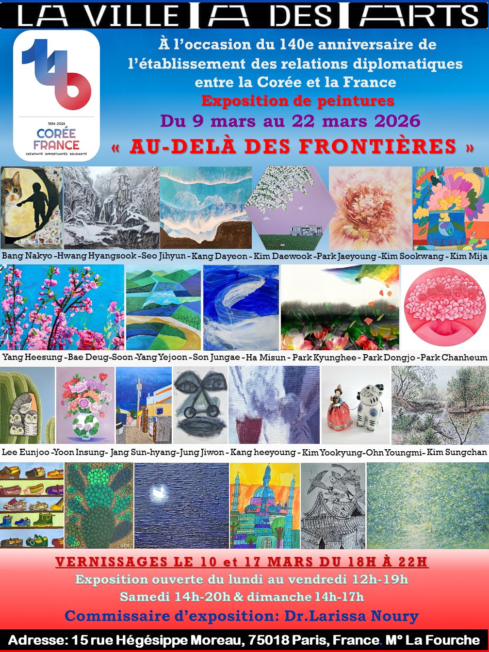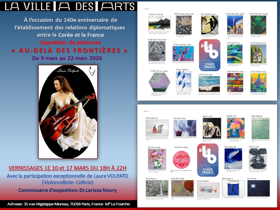 Du 9 au 22 mars 2026, La Galerie propose une exposition organisée par l’association Corée – France, Art Co Design « Au-dela des Frontières » Commissaire d’exposition Dr Larissa Noury.